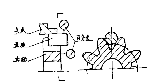 c、磨內(nèi)孔工序按下圖卡齒圈校正徑向和端面跳動(dòng),使它們不超過(guò)7級(jí)精度齒輪齒圈徑向跳動(dòng)允差值的2/3。