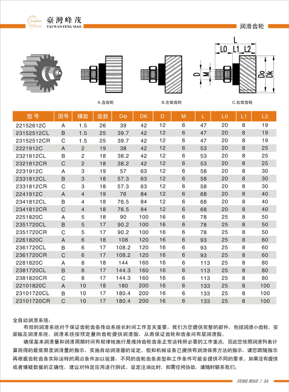 潤滑齒輪(斜齒)